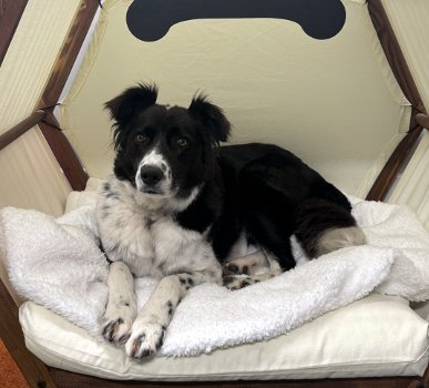 Hi, I’m Holly, a 14-month-old Border Collie mix with a heart full of love. I’m a petite 28 pounds. I’m a quiet girl who enjoys the simple things in life, like going for walks, car rides, and spending time with my favorite humans. I’m already housetrained and good on a leash, so I’m ready to fit right into your daily routine. I get along well with other dogs and enjoy their company. I am a little timid when I first meet new people or encounter new situations and very sudden moves can startle me, so a home without young kids would be best. Once I know I can trust you, I’ll show you just how loving and connected I can be—I’m always happiest when I’m close to my humans. I’m looking for a forever home where I can be loved and feel secure. If you’re someone who appreciates a gentle, loyal companion and can offer me the love I need to thrive, I think we’d make a perfect pair!