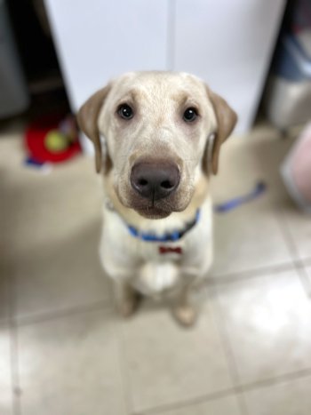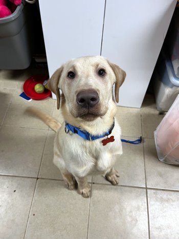 Cannoli is a happy, wiggly 8 month old, 46 pound Lab puppy. This charming boy is bursting with love and snuggles! He already knows how to sit and is eager to learn more, especially if treats or cuddles are involved.