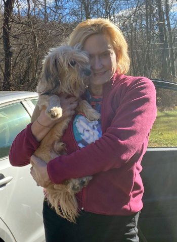 An 8 pound 11-month-old Maltese pup with a gentle heart and a love for cozying up in laps.