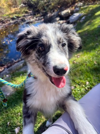 A 4-month-old Aussie pup with a heart full of love and 15 pounds of pure cuteness.