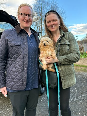 A 33 pound 6-year-old Mini Goldendoodle, and I’m on the search for a forever home with my best friend and sister, Spice!