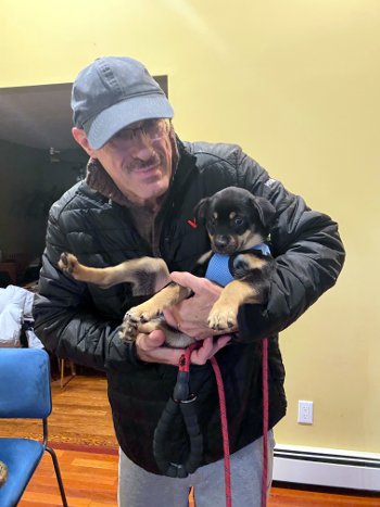 A 13-week-old Newfoundland/Lab mix weighing 24 pounds and endless love to give.