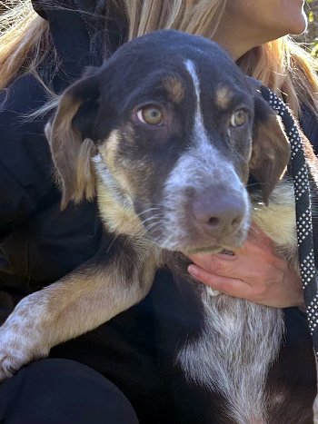 A 2-3-year-old Hound/Lab mix with 70 pounds of love and goofiness to share!