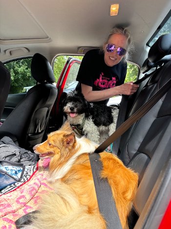 I am a 6-year-old Bernedoodle weighing 44 pounds.