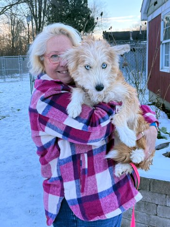 An 8-month-old Husky/Shiba Inu/Poodle mix with 23 pounds of pure halo-level cuteness.