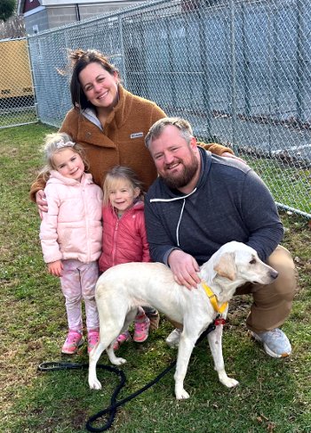 A one-year-old, 45-pound yellow Lab with a heart full of sunshine.