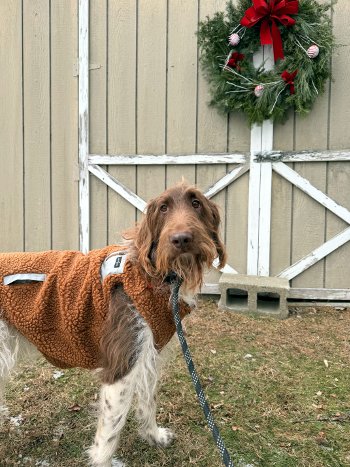A 4-year-old, 50-pound Petit Basset Griffon Vendéen mix with long ears, a soulful face, and a very tender heart.