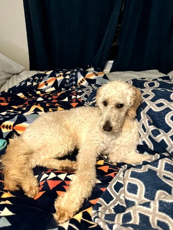 She is a 5 year old, 14 pound Poodle