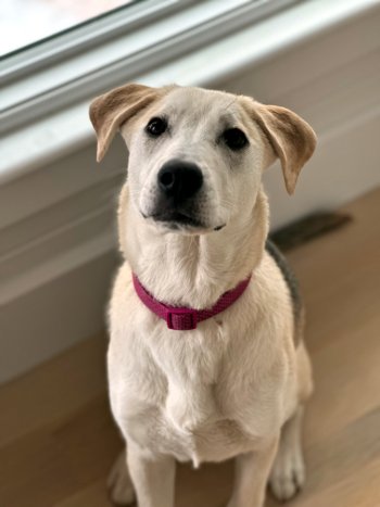 This 8-month-old shepherd mix, weighing 30 pounds, is PURE JOY!