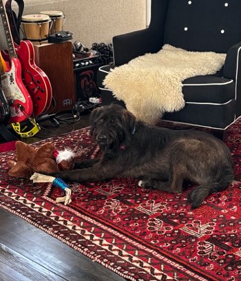 I’m a playful 10 month old, that’s 66 pound Poodle/Wolfhound mix of breeds.
