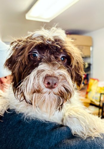 She is a 6 month old, 10 lb Schnauzer/Poodle mix.