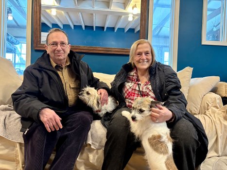 Well hello there! We’re Lacey and Lilac — a mother-daughter duo with matching hearts and wagging tails.