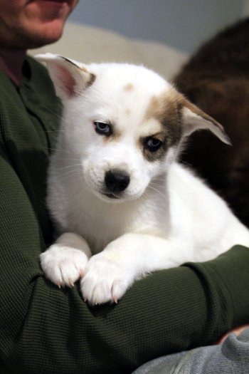 Dove is one of the most unique and stunning puppies you will ever meet! This Husky/Poodle/Shiba Inu mix was born in foster care on 11/17/2025 and is now looking for her forever home. This angel has been raised in foster care and is well socialized with everyone and used to living in a home. She currently weighs 10 lbs, and we anticipate she will be between 35-45 lbs when fully grown.