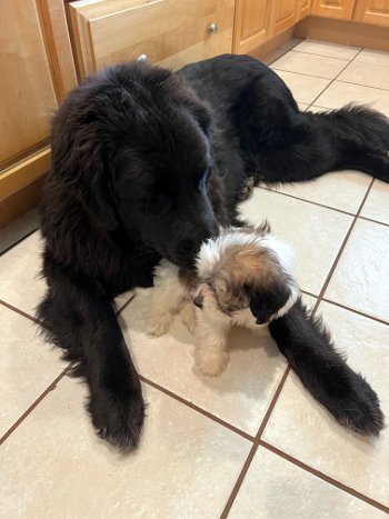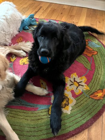 Flint does have elbow dysplasia and needs to stay on joint supplements, but this does not slow him down, and he still enjoys his playtime.