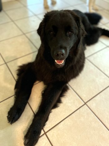 Flint is a 86 pound, 15 month old Great Pyrenees/Golden Retriever mix. This handsome boy is deliciously soft and strikingly handsome. True to his Pyr heritage, he is initially a bit wary of strangers and will bark a little when first meeting new people, so he would do best in a quieter home.
