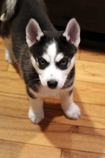 Jingle has gorgeous markings and captivating blue eyes. He inherited both his striking looks and his loving nature from his mother, Merry. This darling boy is very in tune with his people and his environment, always curious about what is going on. He loves to cuddle and does the cutest head tilt when spoken to. It is also a joy to watch him carry his toys, many of which are larger than he is, around the house. Additionally, he gets along great with other dogs.