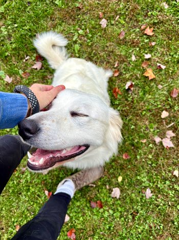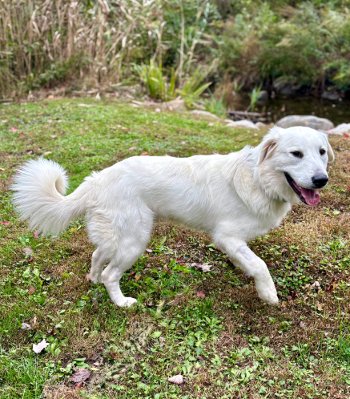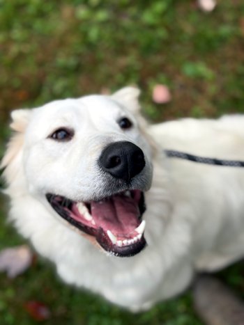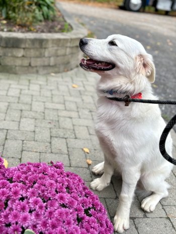 Nice to meet you! I’m Kenzo— a 9 month old Great Pyrenees mix with a heart as big as my paws. I’m already 58 pounds of soft fur and pure sweetness, and I still think I’m a lap dog. I have a calm, gentle way about me — the kind of dog who leans in for hugs, rests my head on your shoulder, and makes everything feel a little lighter. I love everyone I meet and seem to have this quiet joy that follows me around. I also love other dogs and would be so happy to have a canine brother or sister! People call me a love bug, and I think that fits me perfectly. I’m friendly, cuddly, and happiest when I’m close to someone kind. If you’re looking for a gentle best friend who’ll love you endlessly and snuggle up every night, I’m your boy.