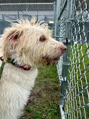 I’m Kylie — a 3–4-year-old Italian Spinone, about 48 pounds, with a scruffy coat and a soft heart. I’m good with other dogs, and I really enjoy my daily walks and playtime. I’m the kind of girl who loves a person to connect with — someone I can bond with deeply and trust completely. I can be nervous at first, especially with lots of noise or too many people coming and going. Because of that, I’d do best in a quieter home without young children — someplace calm, steady, and predictable where I can exhale. Once I realize I’m safe, my whole personality opens up. I melt for belly rubs, nuzzle in for affection, and become incredibly loyal to “my” people. I’m looking for a home that understands a gentle, sensitive dog like me. Give me patience at the beginning, and I’ll give you devotion for life. If you want a loving, affectionate companion who will always be happy to curl up beside you and make you feel like the center of her world, I’d love to be that girl!