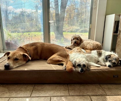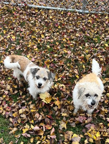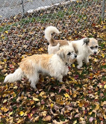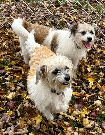 Well hello there! We’re Lacey and Lilac — a mother-daughter duo with matching hearts and wagging tails. I’m Lacey (darker markings), 8 years old, and my daughter Lilac (lighter markings) is 4½. We’re Bichon/Jack Russell mixes, about 17 pounds each, and we’ve been side by side our whole lives. Wherever one of us goes, the other follows — whether it’s curling up on the couch, going for a walk, or greeting new friends with happy tails. We’re sweet, loving, and full of personality. We adore people, are great with kids, and get along well with other dogs. We both walk nicely on a leash and love exploring together, but we’re just as happy snuggling up after a stroll. What we want most is to stay together. We’ve been each other’s comfort through everything, and we couldn’t imagine being apart now. If you’re looking for twice the love, twice the joy, and two perfect companions who already come as a team, we’re your girls!