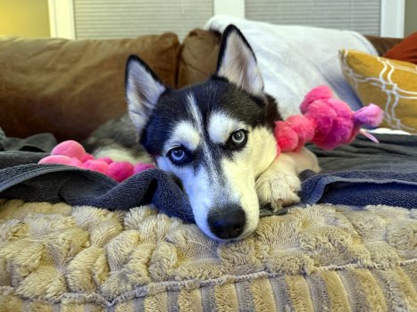 Leia is a stunning, 4-year-old purebred Husky weighing just 42 lbs—the perfect size for cuddling. It would be hard to find a more loving dog; she adores her people, enjoys being near them, and gives the sweetest kisses and snuggles. She is a happy girl with a tail that never stops wagging.