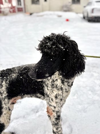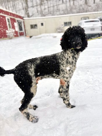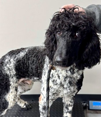 I’m Motown — a 48 pound 6-month-old Standard Poodle puppy with striking black-and-white markings and a heart that’s still learning how brave it can be. I can be a little nervous at first, especially in new situations, but I’m also friendly and curious. I love being around other dogs. Having another dog nearby really helps me build confidence. I look to them for cues, comfort, and encouragement, and I do best when I have a canine friend to show me the ropes. I’m playful and tolerant with other dogs, happy to follow their lead, and eager to learn how to be the best version of myself. I’m still growing, still learning, and still figuring out the world — but I’m doing my best every day. I’d thrive in a home with another dog who can help me feel secure and loved while I continue to gain confidence. If you’re looking for a beautiful, gentle pup who just needs a little reassurance to shine, I’m ready to grow with you!
