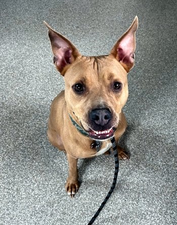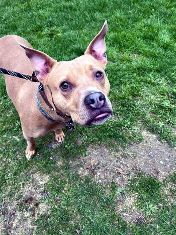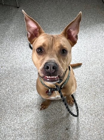 Rip is a darling 3 year old, 58 pound Pit mix. Like his namesake, this boy is handsome and loyal! Rip has not had an easy life thus far – he was initially rescued as part of cruelty case and was starved and then his adopter passed away suddenly. He now finds himself in need of a new home and is understandably confused by it all. Despite that, he could not be sweeter! He is food motivated and so gentle when taking treats. Rip walks well on the leash, is housetrained, and loves riding in the car.