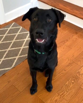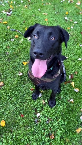 My name is Robby and I’m a 2-year-old, 60-pound black Lab mix with a whole lot of love (and a lotta bounce) packed inside me. I’m what you might call a goofball and a lover…I love to show love to my humans – I’m always showing them affection! I just want to be near my people and make them smile. I also love playing with kids and I’m super gentle with them. I get along with all dogs and especially love wrestling and chasing my foster brother!