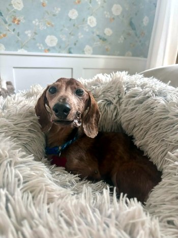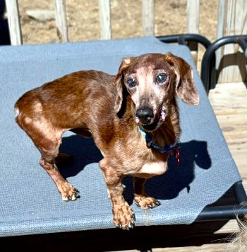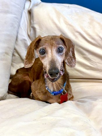 This scrumptious 8 pound 8 year old love muffin Dachsund is looking for his happy ever after. If you are looking to fill your dance card then Tango is the dog for you! Tango and his brother Emmett came to us from a local abandonment case. He was loved his whole life but when their family moved they left them behind in a dark basement without food or water. But Tango is a fighter. Despite everything this dear little chap has been through, he is still overflowing with trust, love and devotion. He will look at you like you are the sun, the moon and the stars because to him, you are. Just one week into foster and he is already gaining weight, his coat is growing back in and he’s ready to live his best life. He’s great with every living thing, including but not limited to: people, dogs, cats, and gentle kids. Whilst his name is Tango he also does a very impressive Quick Step when he sees you reach for his leash, he LOVES his walks, and when it’s dinner time his excited little paws do a very good impression of Lord of the Dance! He needs eye drops twice a day which he takes like a champ, and he might be toothless and gummy but he sure loves his yummies and soft food. He is a low maintenance boy, just feed him, walk him, snuggle him, repeat. Tango is a precious little guy just looking for his forever snuggle buddy, if you think that could be you, the line forms to the left….