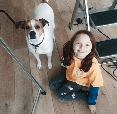 For her birthday, Jaden Pinski, 8 years old, asked that her gifts be given to A New Chance, instead of herself, to help support our work. She raised $340.21!! Way to go Jaden and thank you so much! Here she is with her adopted dog, Buddy, rescued by A New Chance.